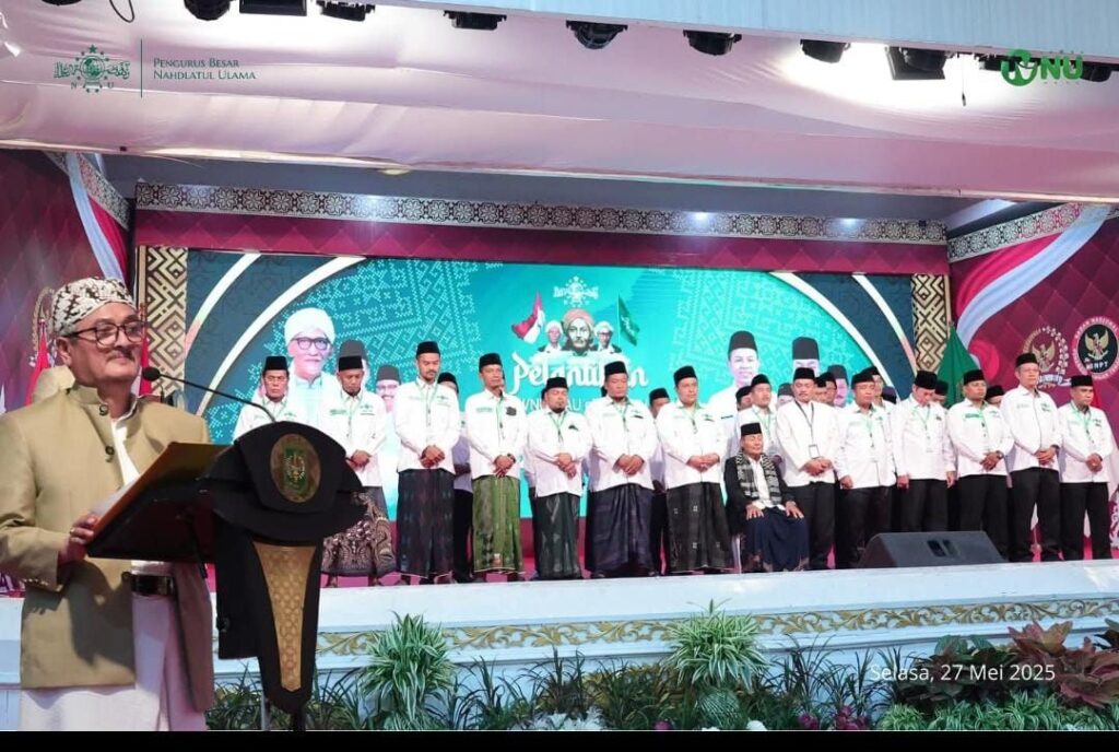 Pekanbaru- Pengurus Wilayah Nahdlatul Ulama Provinsi Riau menggelar pelantikan kepengurusan Syuriah, Tanfidziyah dan 18 lembaga di Gedung Balai Srindit Gubernuran pada Selasa, 27 Mei 2027. Mereka dilantik langsung oleh Pengurus Besar Nahdlatul Ulama (PBNU) Pusat. Hadir dalam pelantikan ini, Ketum PBNU; KH. Yahya Cholil Staquf (Gus Yahya) dan Sekjen sekaligus Menteri Sosial Republik Indonesia; KH. Saifullah Yusuf (Gus Ipul).